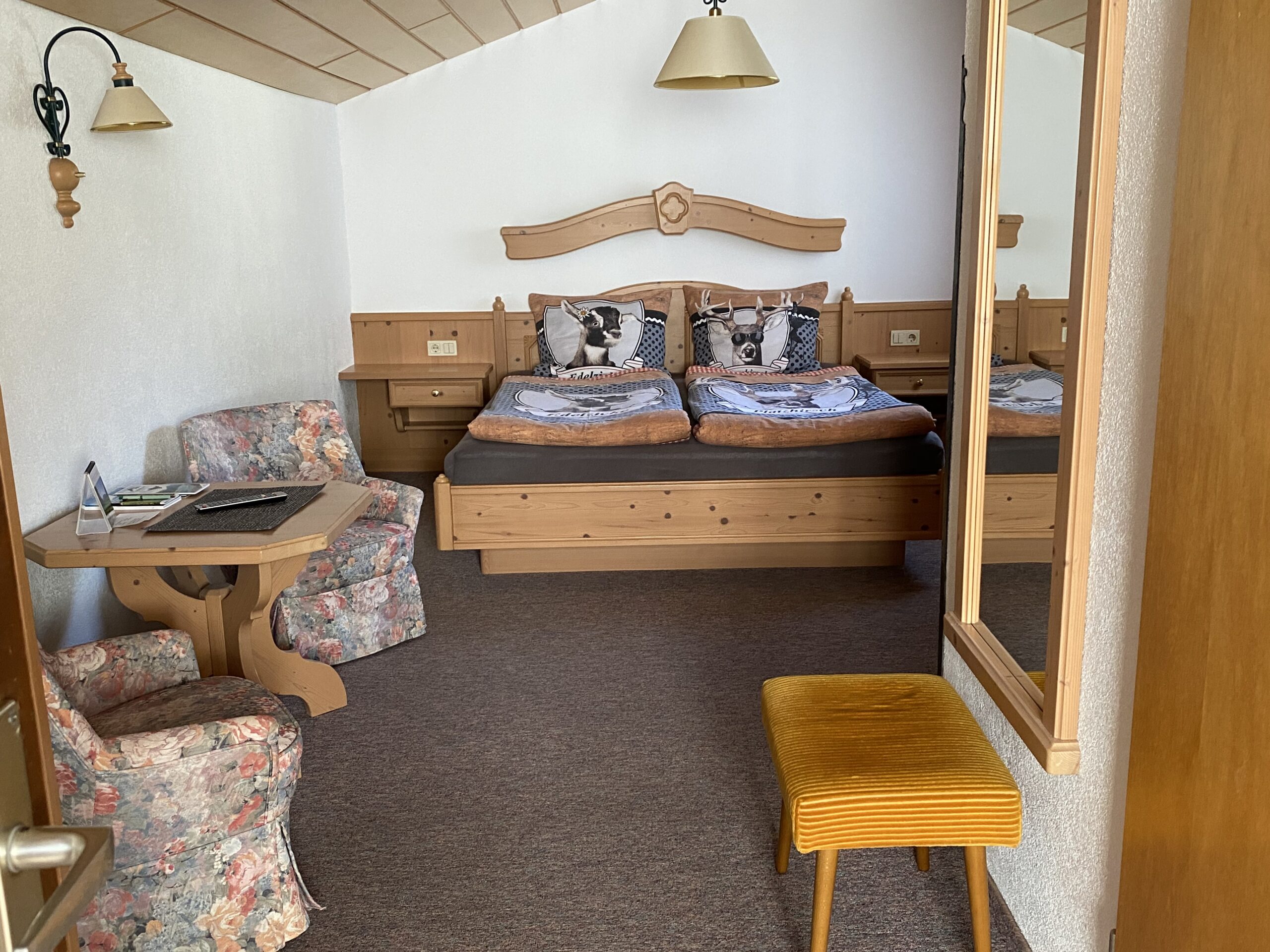 Ihr Zimmer im Tiroler Stil verfügt über ein eigenes Bad und einen gemütlichen, verglasten Balkon, der zu jeder Jahreszeit nutzbar ist – mit herrlichem Blick auf den Hahnenkamm.