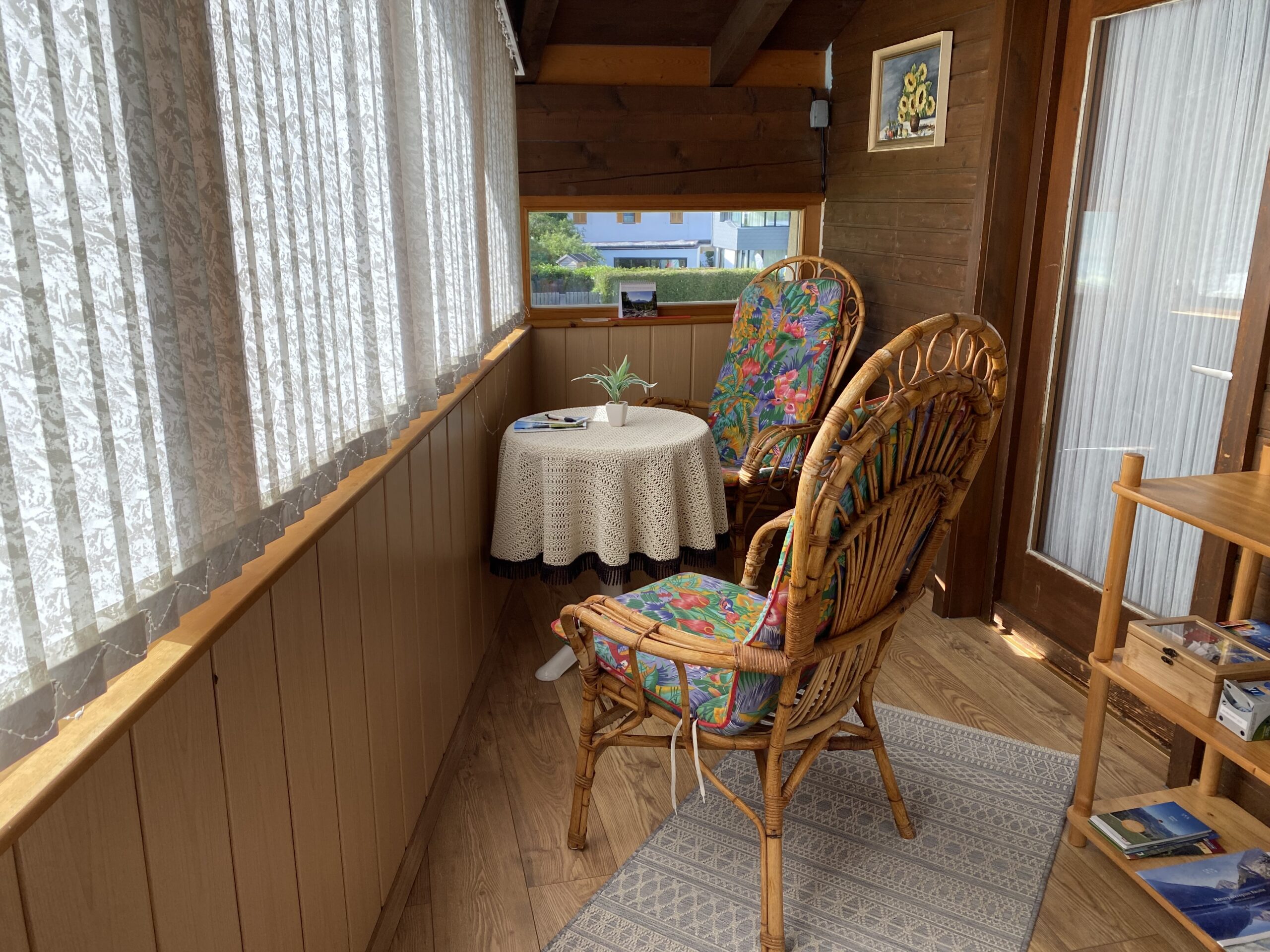 Es erwartet Sie ein gemütliches Zimmer im Tiroler Stil, mit Wintergartenbalkon und herrlichem Blick auf die Bergwelt des Hahnenkamms!
